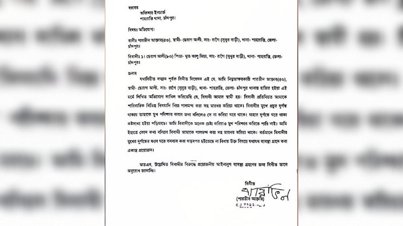 নিজস্ব প্রতিবেদক: চাঁদপুরের শাহরাস্তি উপজেলায় স্বামীর মুখে দুর্গন্ধের অভিযোগ তুলে