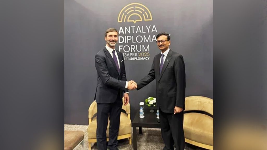 শুক্রবার (১১ এপ্রিল) তুরস্কের আন্টালিয়ায় ‘আন্টালিয়া ডিপ্লোমেসি ফোরাম (এডিএফ) ২০২৫’-এর ফাঁকে পররাষ্ট্র উপদেষ্টা মো. তৌহিদ হোসেন এবং তথ্য ও সম্প্রচার উপদেষ্টা মো. মাহফুজ আলমের সঙ্গে স্লোভাকিয়ার পররাষ্ট্র ও ইউরোপীয় বিষয়ক মন্ত্রী জুরাজ ব্লানারের এক বৈঠক করেন। বৈঠকে এ আহ্বান জানানো হয় বলে পররাষ্ট্র মন্ত্রণালয়ের এক সংবাদ বিজ্ঞপ্তিতে বলা হয়েছে।